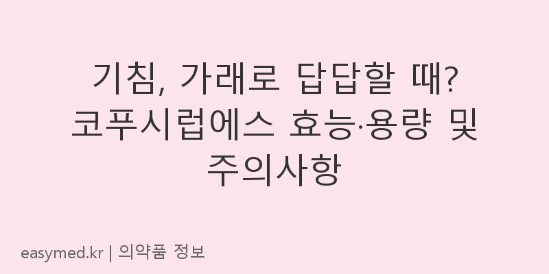 기침, 가래로 답답할 때? 코푸시럽에스 효능·용량 및 주의사항