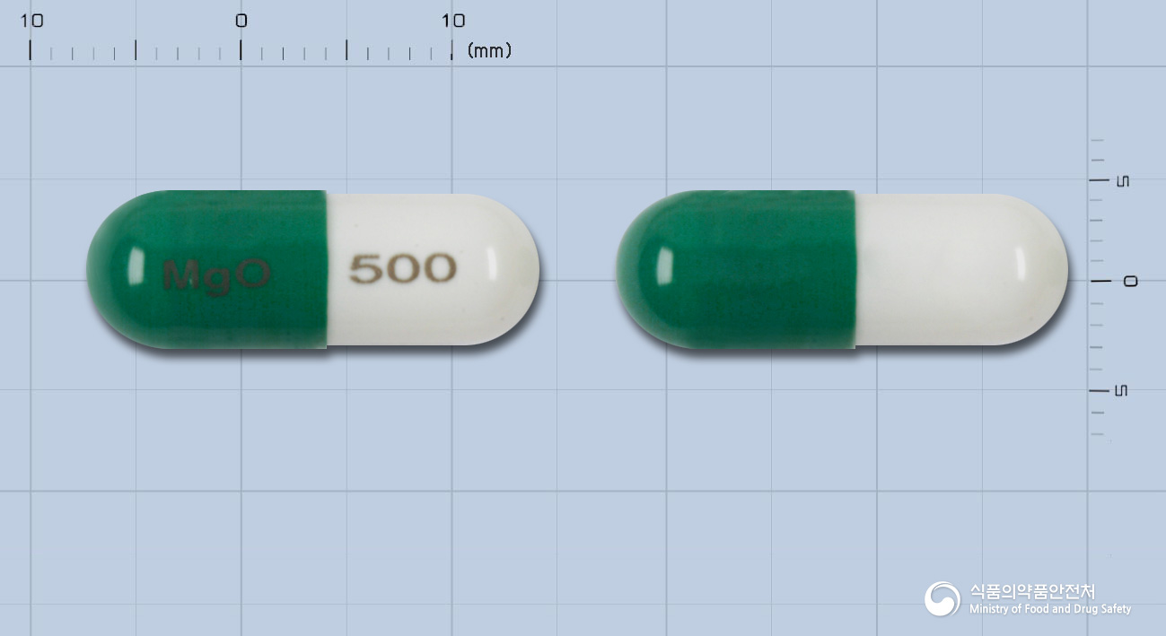 - 위.십이지장궤양, 위염, 위산과다에는 산화마그네슘으로서 1일 1~2캡슐(0.5~1 g)을 수회(여러 차례) 분할 복용합니다.