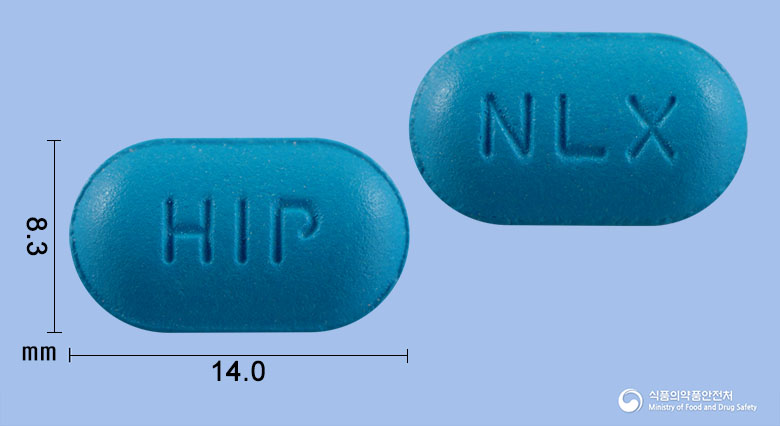 - 성상: 청색의 타원형 필름코팅정제입니다.