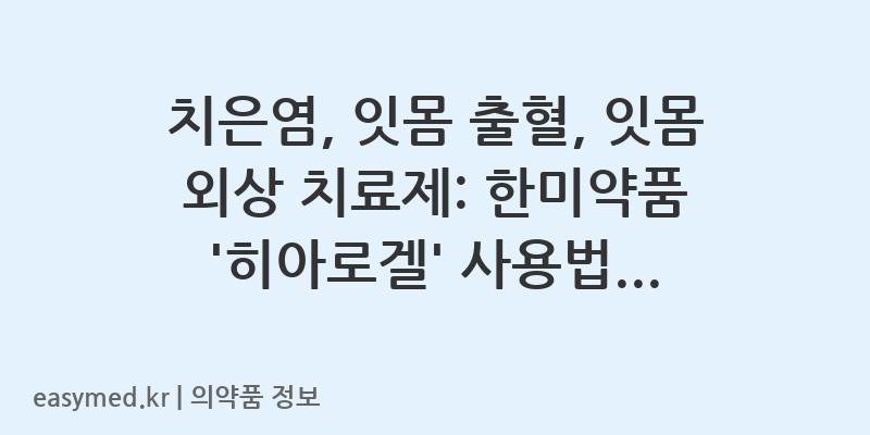 치은염, 잇몸 출혈, 잇몸 외상 치료제: 한미약품 ‘히아로겔’ 사용법과 주의사항