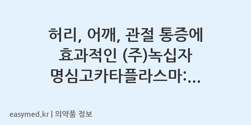 안녕하세요, 꼼꼼한 약사 블로거입니다. 오늘은 (주)녹십자에서 제조한 명심고카타플라스마에 대해 자세히 알아보겠습니다. 이 약은 다양한 통증과 염증 완화에 사용되는 외용제입니다. 올바른 사용을 위해 약사 블로거가 중요한 정보를 정리해 드립니다.
