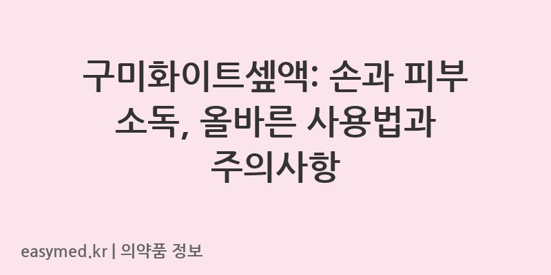 안녕하세요, 꼼꼼한 약사 블로거입니다. 오늘은 손과 피부의 청결을 책임지는 ‘구미화이트셒액’에 대해 자세히 알아보겠습니다. 올바른 사용법과 주의사항을 숙지하여 안전하게 사용하시기 바랍니다.
