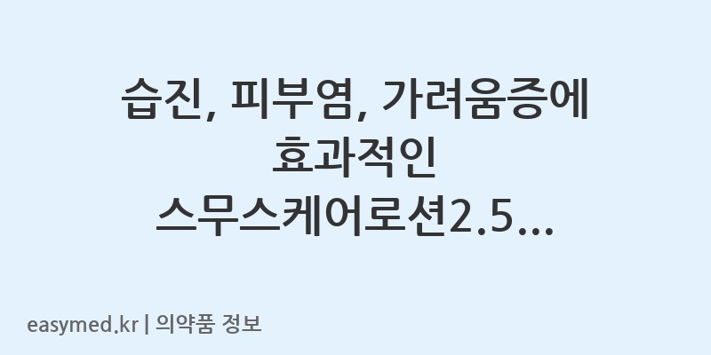 안녕하세요. 꼼꼼한 약사 블로거입니다. 오늘은 습진, 피부염, 가려움증 등 다양한 피부 문제에 사용되는 스무스케어로션2.5%(히드로코르티손)에 대해 자세히 알아보겠습니다.