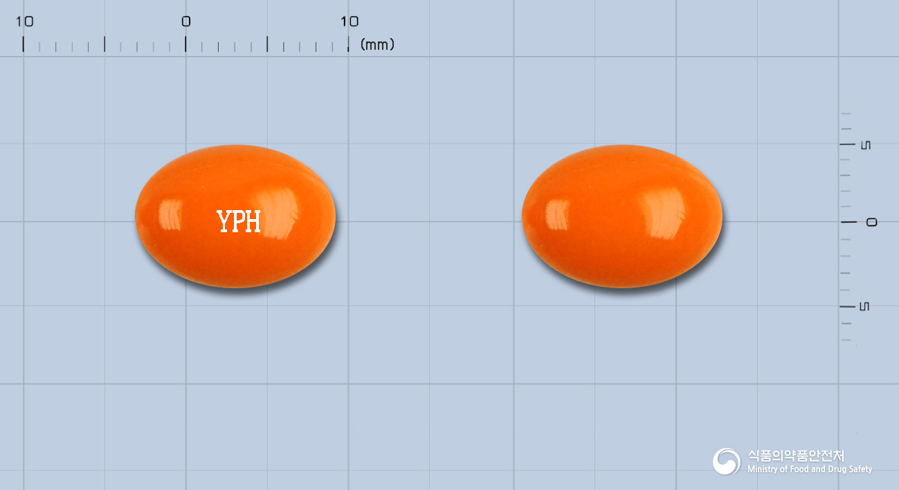 - 성상: 유백색의 유상물질이 든 주황색 타원형 연질캡슐제