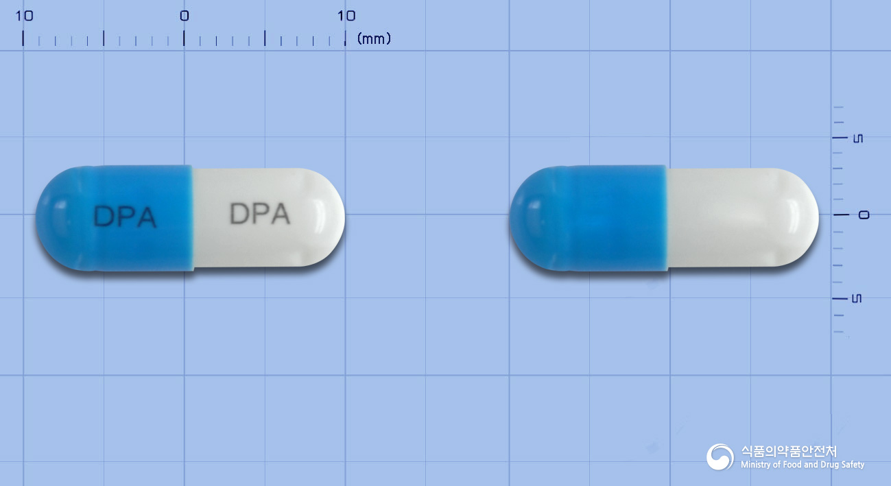 디펜콜에이캡슐은 흰색의 분말이 든 상부는 담청색, 하부는 흰색의 경질 캡슐제입니다. 모양은 장방형이며, 색상은 파랑 계열입니다. 캡슐에는 DPA DPA 각인이 되어 있습니다.
