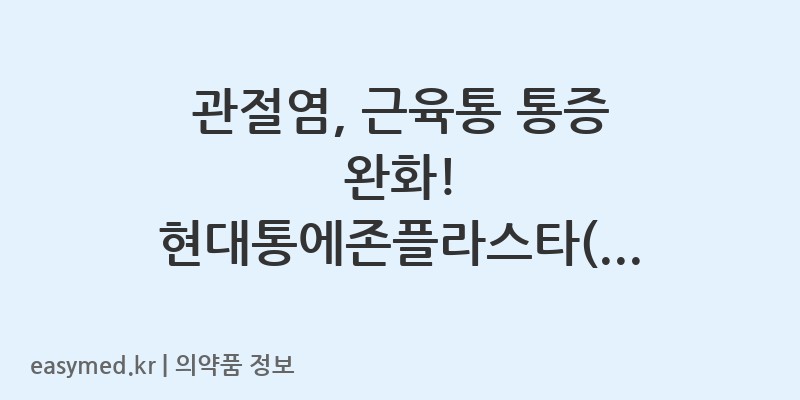 안녕하세요, 꼼꼼한 약사 블로거입니다. 오늘은 현대약품(주)에서 제조한 ‘현대통에존플라스타(펠비낙)’에 대해 자세히 알아보겠습니다. 이 약은 퇴행성관절염, 어깨관절주위염, 근육통 등 다양한 통증 완화에 사용되는 소염진통 플라스타입니다. 이 포스팅을 통해 현대통에존플라스타의 효능, 용법, 그리고 주의사항까지 꼼꼼하게 확인하시고 안전하게 사용하시기 바랍니다.