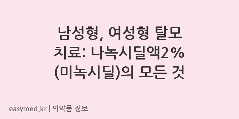 안녕하세요! 꼼꼼하고 전문적인 약사 블로거, 약사 라온입니다. 오늘은 많은 분들이 고민하시는 탈모 치료에 사용되는 의약품, 나녹시딜액2%(미녹시딜)에 대해 자세히 알아보겠습니다. 이 포스팅을 통해 나녹시딜액2%의 효과와 올바른 사용법, 그리고 꼭 알아두어야 할 주의사항까지 꼼꼼하게 확인하시고 건강한 두피 관리에 도움을 받으시길 바랍니다.