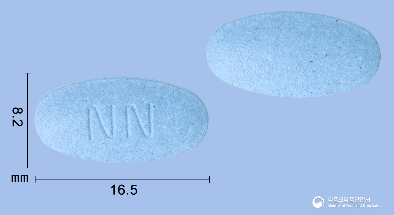 - 성상: 연한 파란색의 타원형 필름코팅정