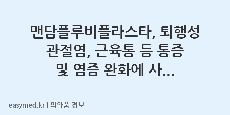 안녕하세요! 꼼꼼한 약사 블로거입니다. 오늘은 (주)보령의 맨담플루비플라스타(플루르비프로펜)에 대해 자세히 알아보겠습니다. 이 약은 통증과 염증 완화에 사용되는 첩부제로, 관절염부터 근육통까지 다양한 증상에 효과적입니다.