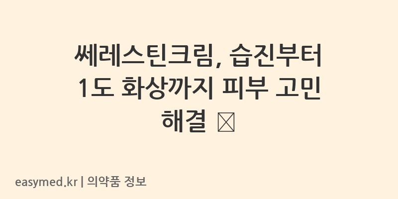 안녕하세요, 꼼꼼하고 전문적인 약사 블로거입니다. 오늘은 다양한 피부 질환과 1도 화상에 효과적인 (주)동구바이오제약의 쎄레스틴크림에 대해 자세히 알아보겠습니다. 올바른 사용을 위해 중요한 정보를 꼼꼼히 확인하세요.