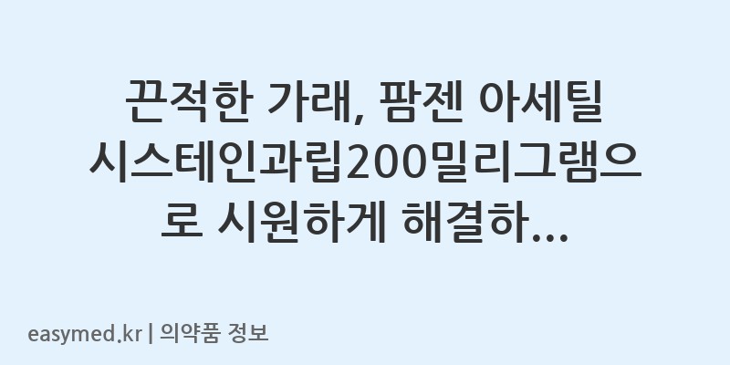 오늘 알아본 ‘팜젠 아세틸시스테인과립200밀리그램’ 정보가 여러분의 건강 관리에 도움이 되기를 바랍니다. 올바른 복용으로 가래 없는 편안한 호흡을 되찾으세요. 궁금한 점이 있다면 언제든지 약사에게 문의하세요!