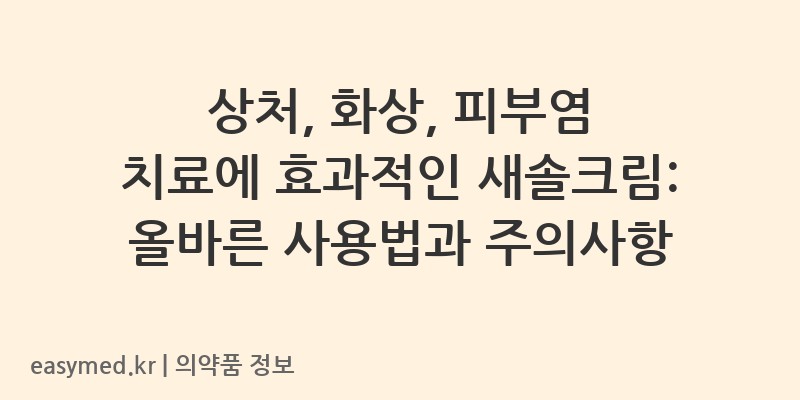 상처, 화상, 피부염 치료에 효과적인 새솔크림: 올바른 사용법과 주의사항