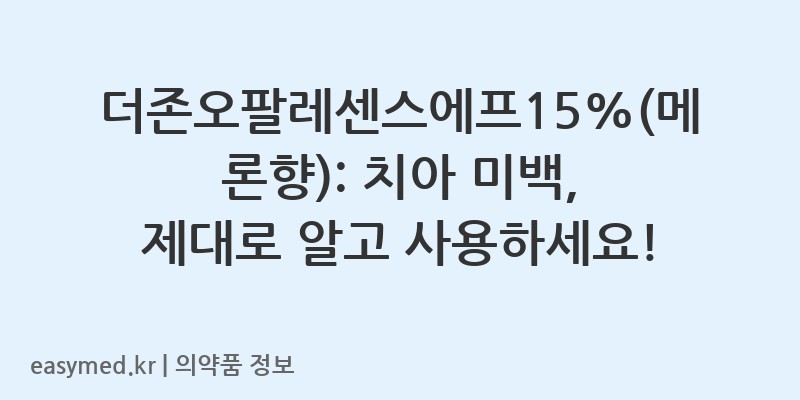 안녕하세요, 꼼꼼한 약사 블로거입니다. 오늘은 (주)더존월드의 치아 미백제, ‘더존오팔레센스에프15%(메론향)’에 대해 자세히 알아보겠습니다. 환한 미소를 위한 올바른 사용법과 주의사항을 함께 살펴보시죠.
