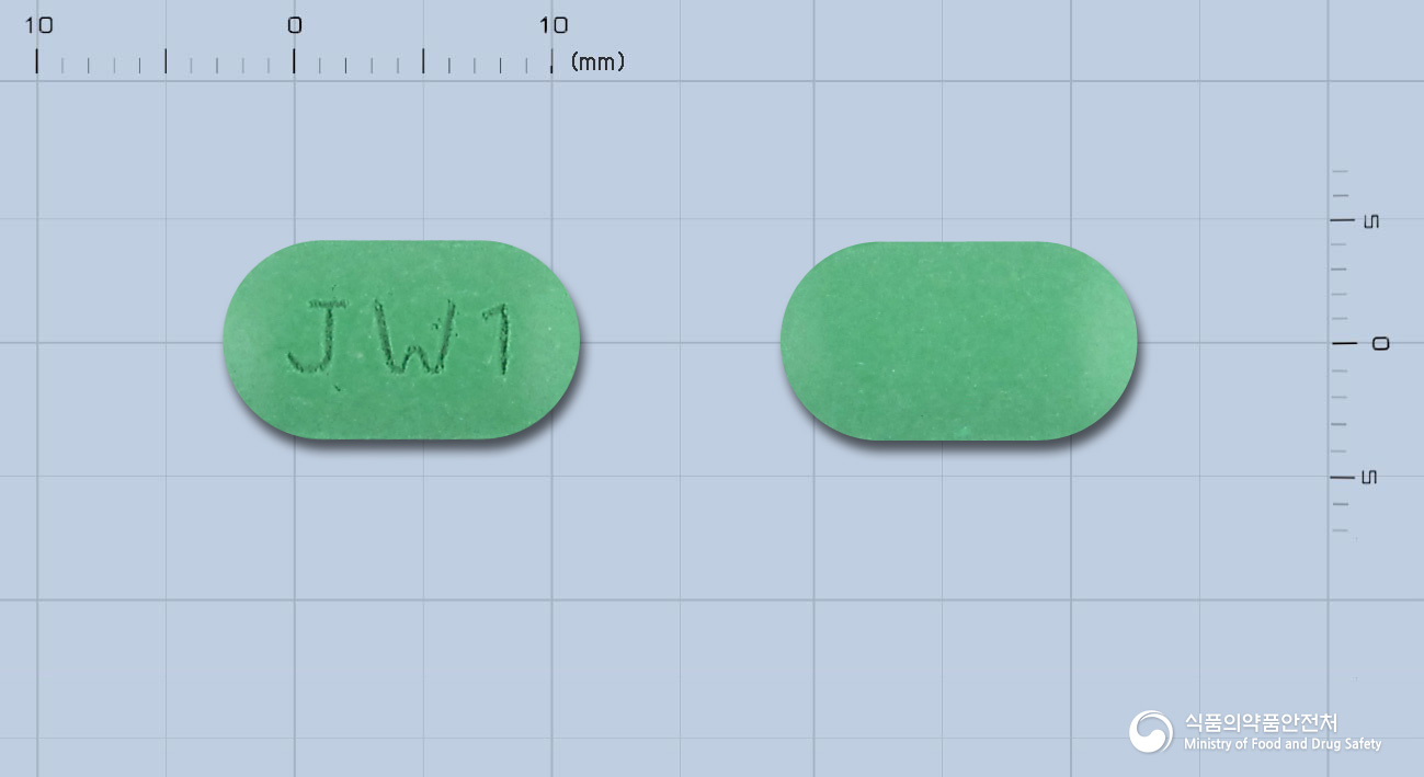 - 제형: 장방형의 장용피를 한 연녹색의 필름코팅정