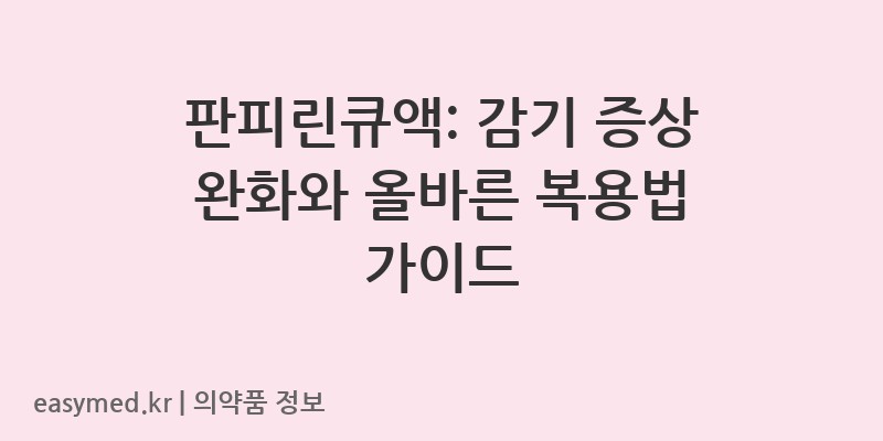 판피린큐액은 감기 증상 완화에 효과적인 약이지만, 올바른 복용법과 주의사항을 숙지하여 안전하게 사용하는 것이 중요합니다. 궁금한 점이 있다면 언제든지 약사 또는 의사와 상담하시기 바랍니다.