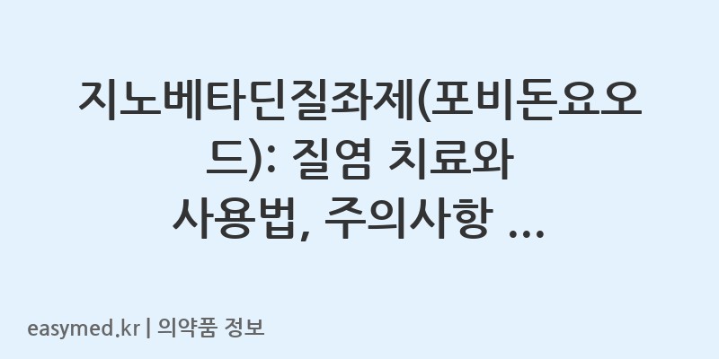 안녕하세요, 꼼꼼하고 전문적인 약사 블로거입니다. 오늘은 에이치엘비제약(주)에서 제조하는 지노베타딘질좌제(포비돈요오드)에 대해 자세히 알아보겠습니다. 이 약은 다양한 질염 치료 및 산부인과 수술 전 처치에 사용되는 중요한 약물입니다.