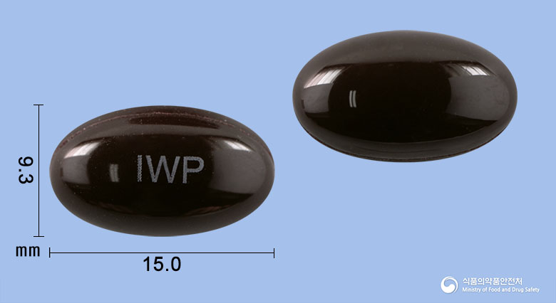 눈모아연질캡슐은 연한 녹황색의 점조성 내용물이 든 암갈색의 타원형 연질캡슐입니다. 모양은 타원형이며 색상은 갈색이고, ‘IWP’라는 각인이 새겨져 있습니다.