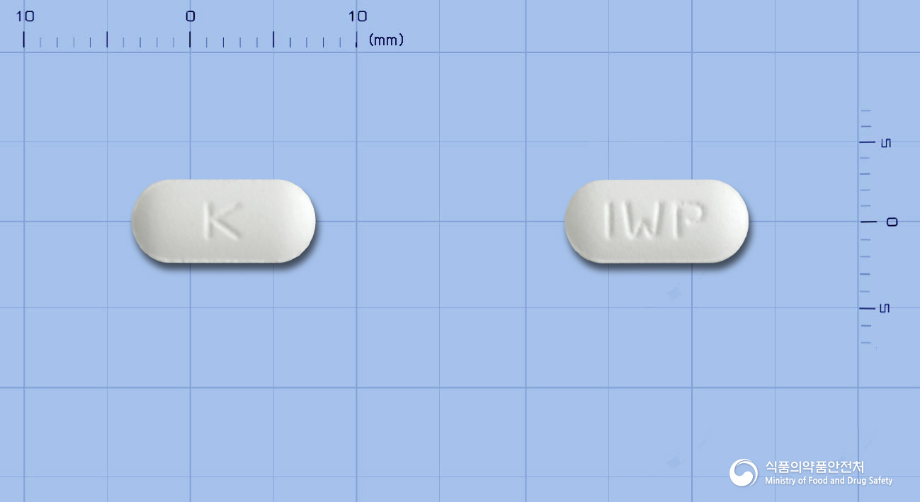 외형 정보: 기스톱정은 흰색의 장방형 필름코팅정으로, ‘K’가 각인되어 있습니다.