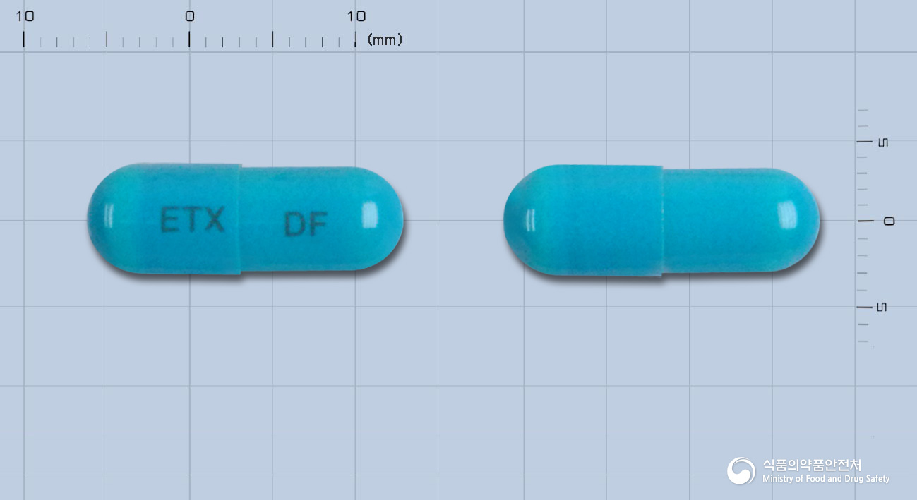 • 성상: 엷은 주황색의 분말이 든 상·하부 청색의 경질캡슐
