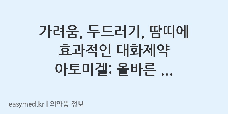 안녕하세요, 꼼꼼한 약사 블로거입니다. 오늘은 대화제약의 ‘아토미겔’에 대해 자세히 알아보겠습니다. 다양한 피부 트러블로 고민이 많으실 텐데요, 이 포스팅을 통해 아토미겔의 효능부터 올바른 사용법, 그리고 꼭 알아두셔야 할 주의사항까지 꼼꼼하게 살펴보시길 바랍니다.