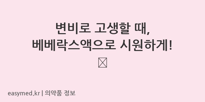 안녕하세요, 꼼꼼하고 전문적인 약사 블로거입니다. 오늘은 답답한 변비 증상으로 불편함을 겪고 계신 분들을 위한 의약품, 베베락스액에 대해 자세히 알아보겠습니다. 베베락스액은 빠르고 효과적인 변비 해소를 돕는 관장액으로, 올바른 사용법과 주의사항을 숙지하는 것이 중요합니다. 안전하고 현명한 의약품 사용을 위해 끝까지 읽어주세요.