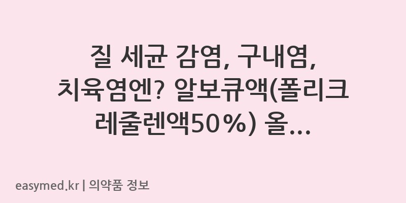 안녕하세요, 꼼꼼한 약사 블로거입니다. 오늘은 (주)퍼슨에서 제조한 ‘알보큐액(폴리크레줄렌액50%)’에 대해 자세히 알아보겠습니다. 이 약은 질 세균 감염, 구내염, 치육염 등 다양한 염증성 질환에 사용되는 외용액입니다. 정확한 효능과 올바른 사용법, 그리고 꼭 알아두셔야 할 주의사항까지 함께 살펴볼까요?