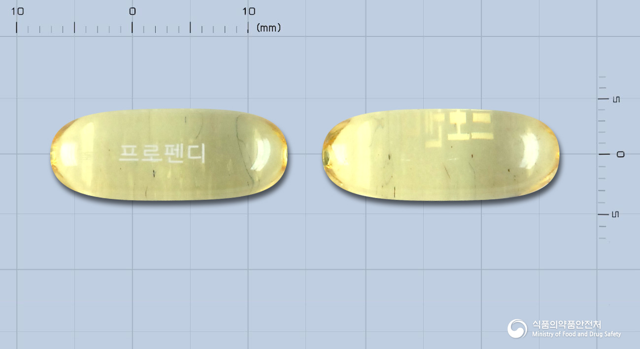 - 제형: 무색 내지 미황색의 투명한 내용물을 함유하는 투명의 장방형 연질캡슐제