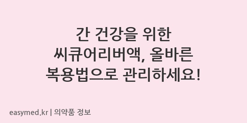간 건강을 위한 씨큐어리버액, 올바른 복용법으로 관리하세요!
