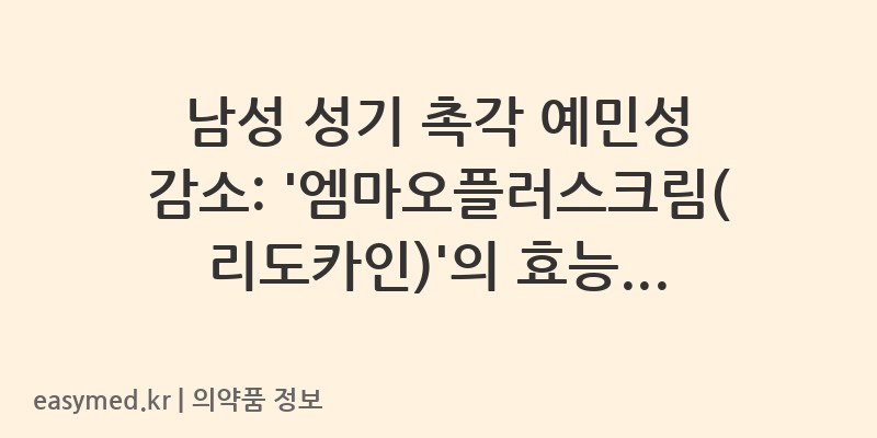 안녕하세요. 꼼꼼한 약사 블로거입니다. 오늘은 남성 성기 촉각의 예민성 감소에 사용되는 국소마취제, 알리코제약(주)의 ‘엠마오플러스크림(리도카인)’에 대해 자세히 알아보겠습니다. 이 포스팅을 통해 정확한 정보와 안전한 사용법을 숙지하시기 바랍니다.