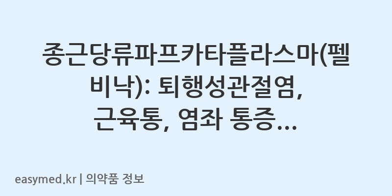 💊 종근당류파프카타플라스마(펠비낙) 요약 정보