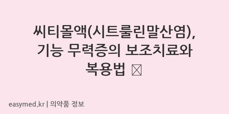 씨티몰액(시트룰린말산염), 기능 무력증의 보조치료와 복용법 💊
