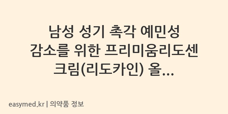 안녕하세요. 꼼꼼한 약사 블로거입니다. 오늘은 남성 성기 촉각의 예민성 감소에 사용되는 프리미움리도센크림(리도카인)에 대해 자세히 알아보겠습니다. 이 약은 (주)티디에스팜에서 제조하며, 올바른 사용법과 주의사항을 숙지하여 안전하게 사용하시기 바랍니다.