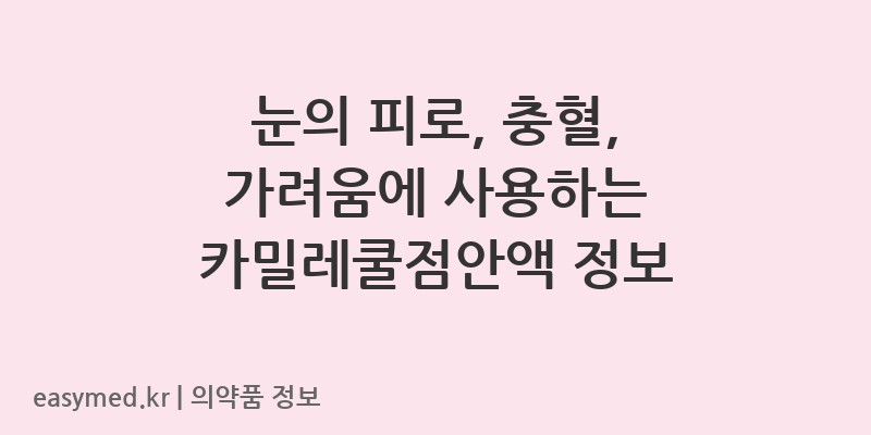 안녕하세요, 꼼꼼한 약사 블로거입니다. 오늘은 국제약품(주)에서 제조한 ‘카밀레쿨점안액’에 대해 자세히 알아보겠습니다. 이 점안액은 다양한 눈 불편 증상에 사용될 수 있는 일반의약품입니다.