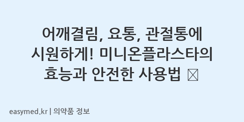 어깨결림, 요통, 관절통에 시원하게! 미니온플라스타의 효능과 안전한 사용법 🩹