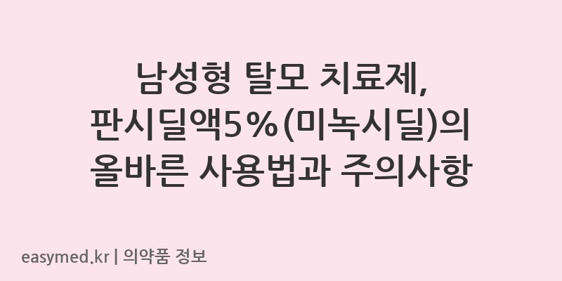 안녕하세요! 꼼꼼한 약사 블로거입니다. 오늘은 남성형 탈모증 치료에 사용되는 동국제약(주)의 ‘판시딜액5%(미녹시딜)’에 대해 자세히 알아보겠습니다. 탈모로 고민하시는 분들을 위해 정확하고 유익한 정보를 전달해 드리고자 합니다.