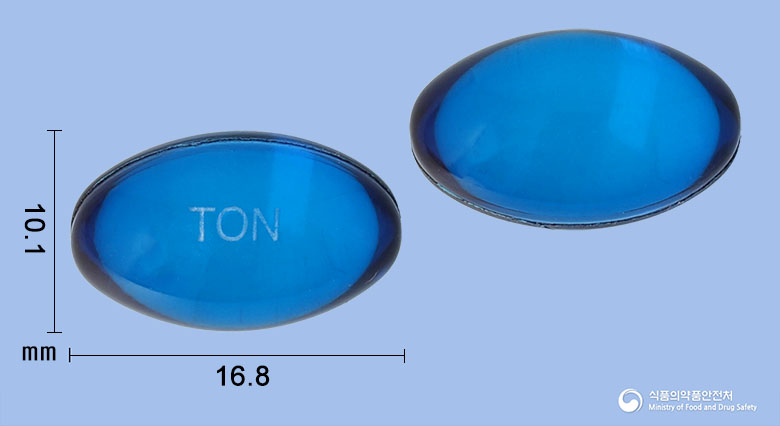 • 제형: 무색 내지 연한 청색의 투명한 내용물을 함유하는 연질캡슐