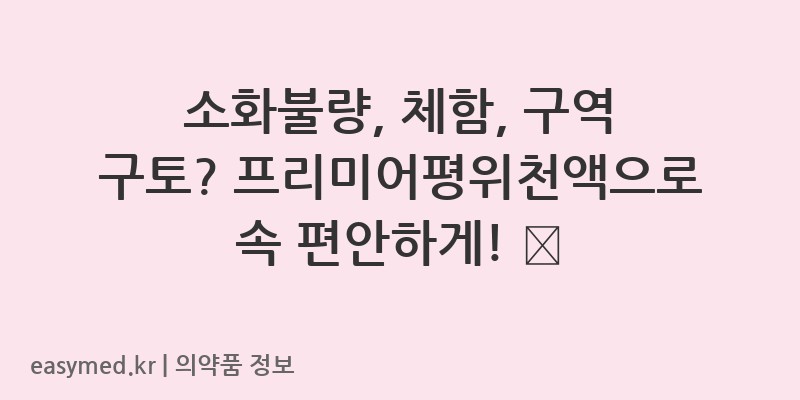 안녕하세요, 꼼꼼한 약사 블로거입니다. 오늘은 속이 더부룩하고 소화가 잘 안 될 때 찾는 소화제, 광동제약의 ‘프리미어평위천액’에 대해 자세히 알아보겠습니다. 다양한 소화기 증상으로 불편함을 겪고 계신 분들께 도움이 되기를 바랍니다.