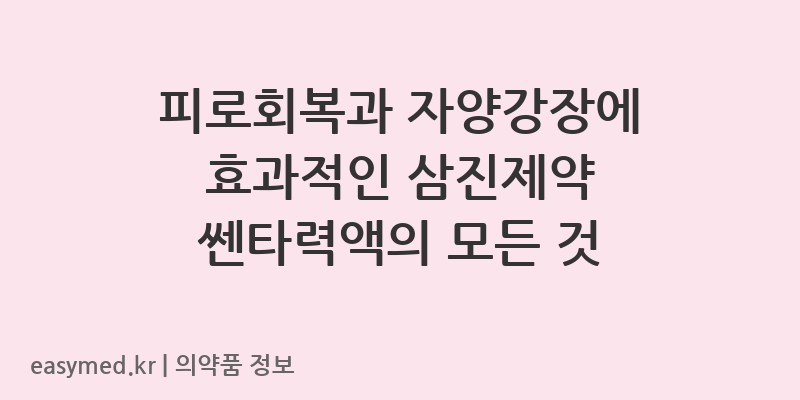 안녕하세요, 꼼꼼한 약사 블로거입니다. 💊 오늘은 삼진제약(주)의 쎈타력액에 대해 자세히 알아보겠습니다. 쎈타력액은 자양강장 및 육체 피로 회복에 도움을 주는 일반의약품입니다. 어떤 분들이 복용하면 좋은지, 정확한 복용법과 주의사항은 무엇인지 함께 살펴보겠습니다.