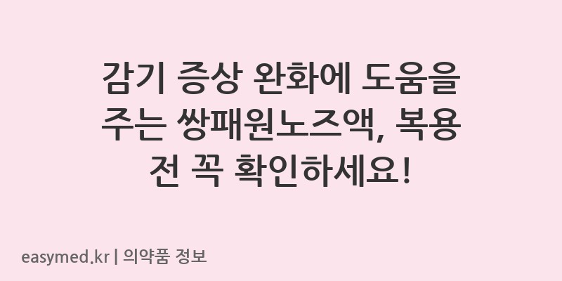 감기 증상 완화에 도움을 주는 쌍패원노즈액, 복용 전 꼭 확인하세요!