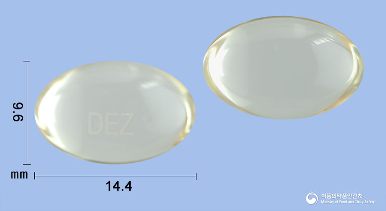 • 성상: 무색 내지는 미황색의 투명한 내용물이 든 투명한 타원형 연질캡슐입니다.