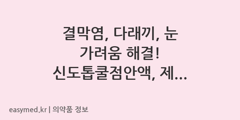 안녕하세요, 꼼꼼하고 전문적인 약사 블로거입니다. 오늘은 국제약품(주)에서 제조하는 신도톱쿨점안액에 대해 자세히 알아보겠습니다. 눈의 불편함을 겪고 계신 분들이라면 주목해주세요. 이 포스팅을 통해 신도톱쿨점안액의 올바른 사용법과 주의사항을 숙지하시고 건강한 눈 관리에 도움이 되시길 바랍니다.