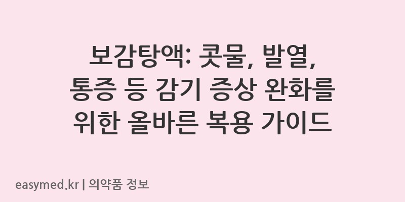 보감탕액: 콧물, 발열, 통증 등 감기 증상 완화를 위한 올바른 복용 가이드