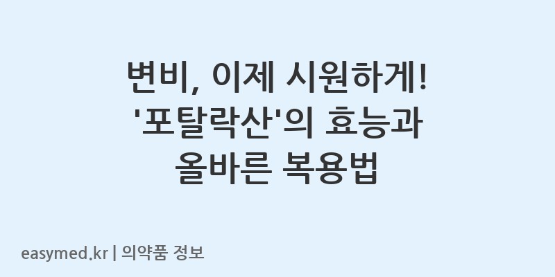 안녕하세요, 꼼꼼하고 전문적인 약사 블로거입니다. 오늘은 (주)유한양행에서 제조한 변비 치료제 포탈락산(락티톨수화물)에 대해 자세히 알아보겠습니다. 잦은 변비로 불편을 겪고 계신 분들을 위해 이 약의 효능부터 올바른 복용법, 그리고 꼭 알아야 할 주의사항까지 꼼꼼하게 정리해 드립니다.