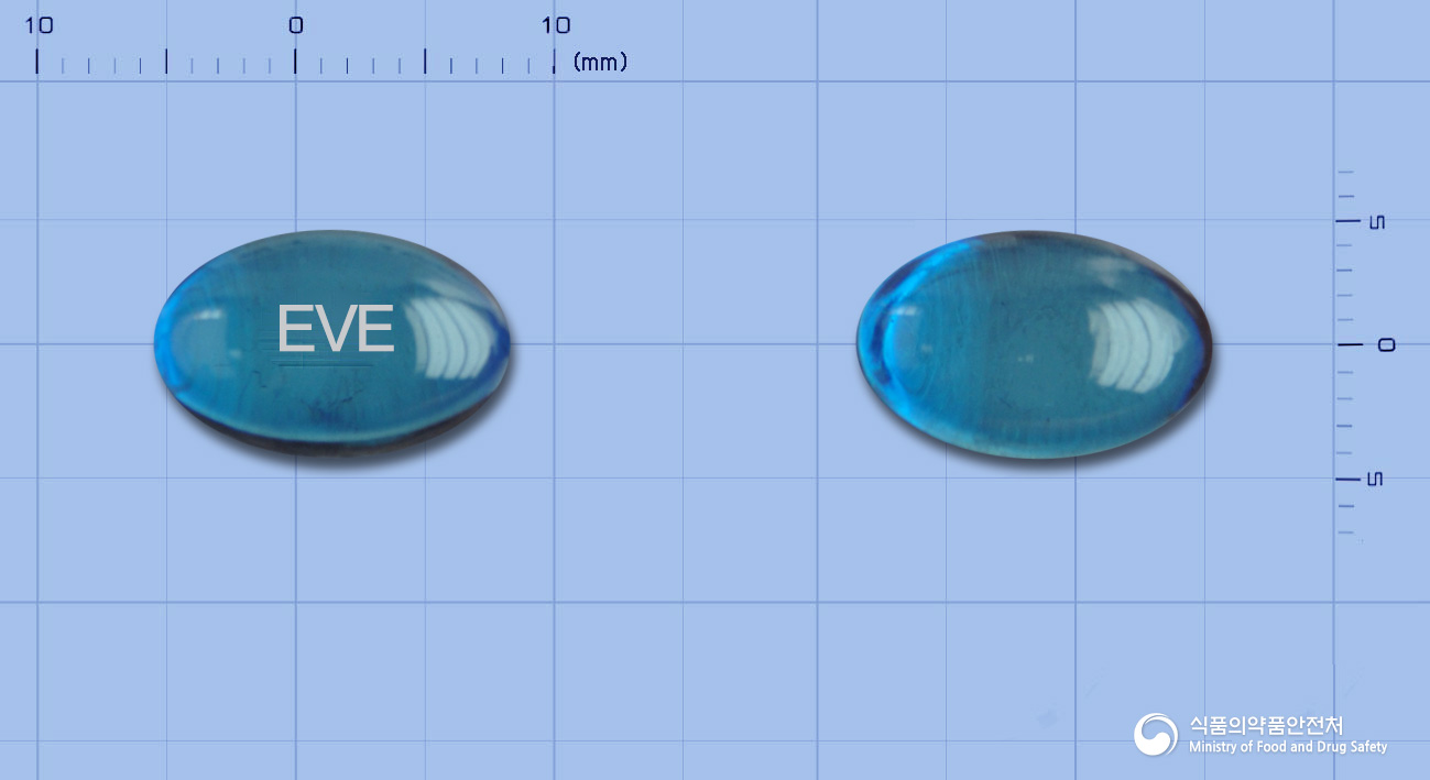 • 성상: 무색 내지 연한 청색의 투명한 내용물을 함유한 청색의 투명한 타원형 연질캡슐